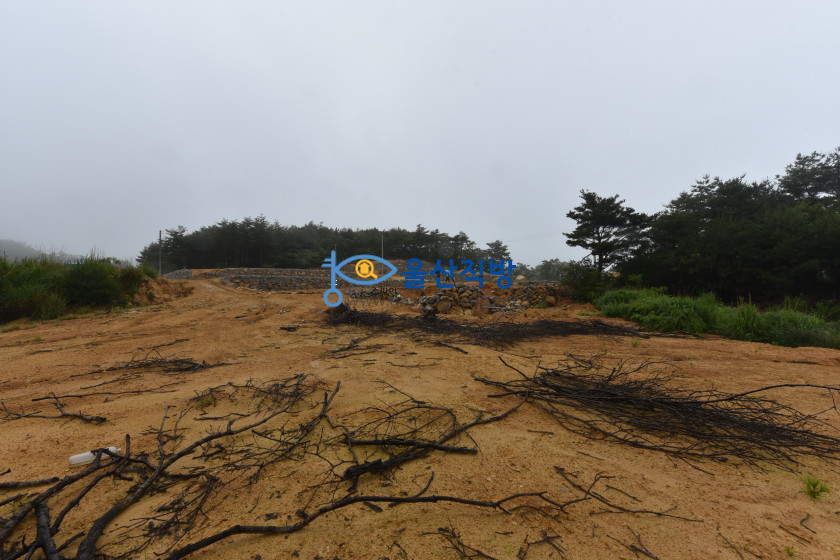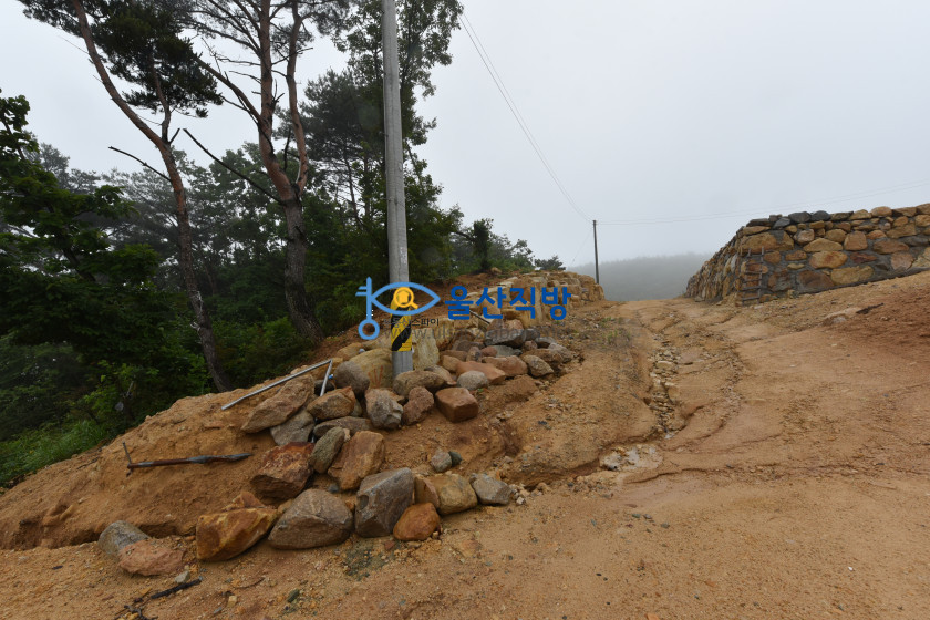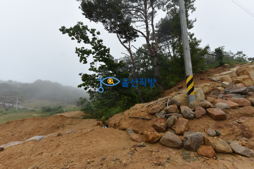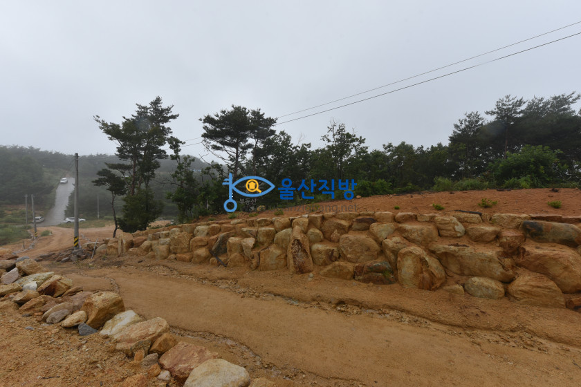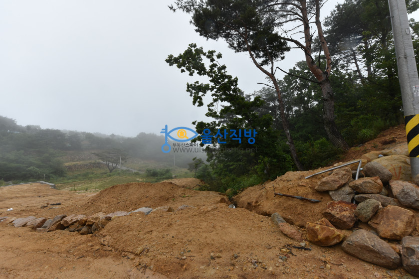 아래보이는 영상에 돌담이 쌓인부분과  공사된 부분 그리고 그옆에보이는 나무가 울창한 임야 모두 매매 대상이며