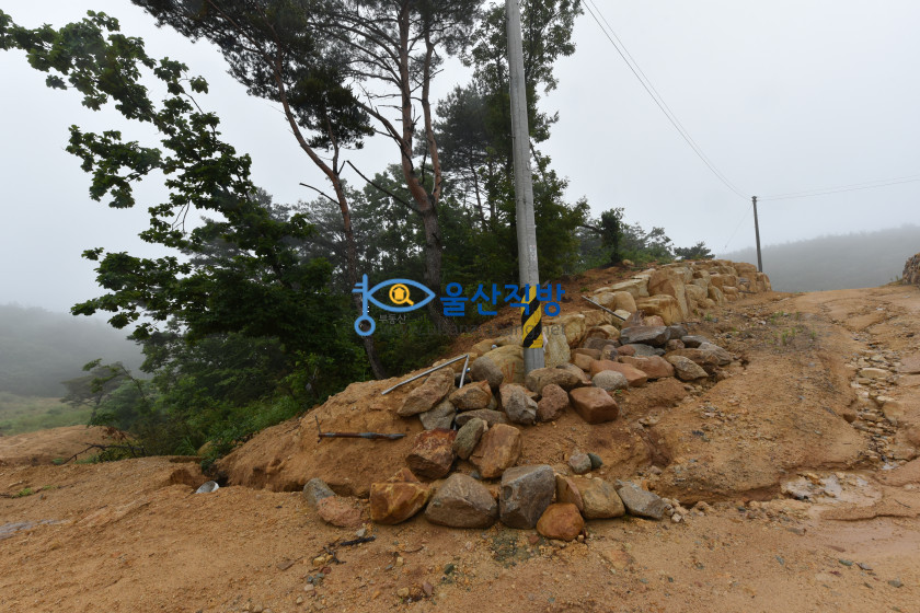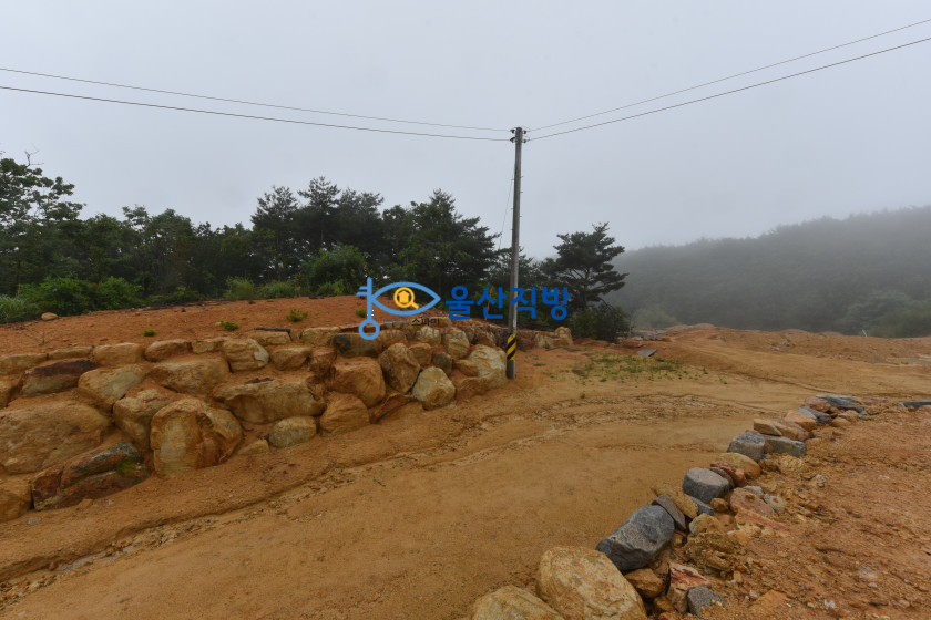 아래보이는 영상에 돌담이 쌓인부분과  공사된 부분 그리고 그옆에보이는 나무가 울창한 임야 모두 매매 대상이며