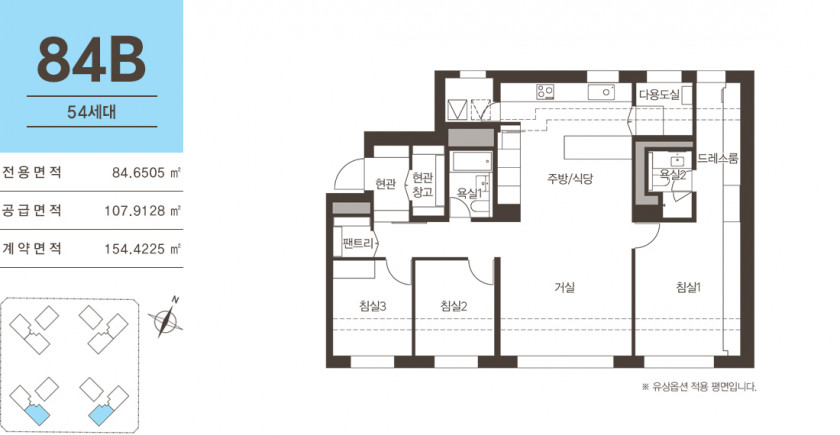 면적(84B): 전용 84.6505㎡ / 공급 107.9128㎡